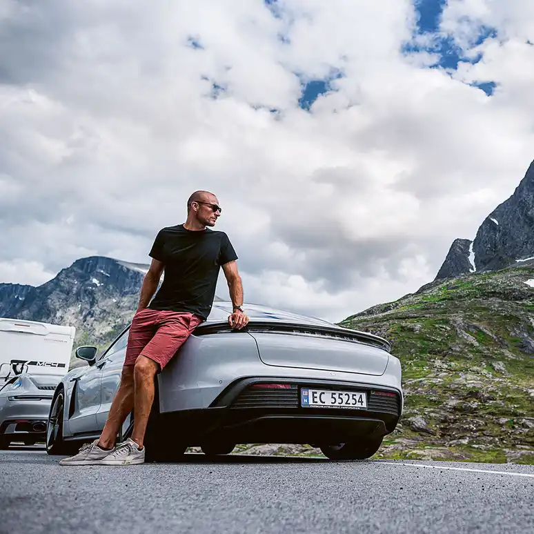 Cayenne E-Hybrid Black Edition: Fuel consumption (weighted) combined (model range): 4.4 – 4.1 l/100 km, Electric energy consumption (weighted) combined (model range): 19.7 – 19.3 kWh/100 km | Taycan: Electric energy consumption combined (model range): 19.4 – 16.7 kWh/100 km, CO₂-emissions combined (model range): 0 g/km